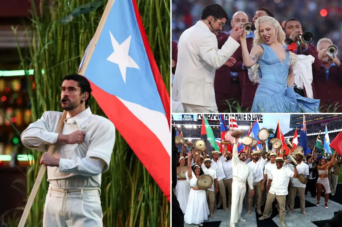 Near the end of the halftime show, Bad Bunny emerged from the thick of a sugar cane field, brandishing the Puerto Rican flag while surrounded by dancers mimicking power line workers.