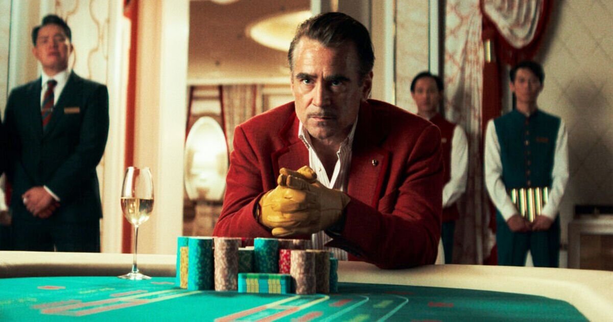 This promising opening follows Farrell’s sweaty, desperate drunk, avoiding his creditors, trying his yellow-gloved hand time and again at the next baccarat table, while conning good champagne out of the bars before doing a runner.