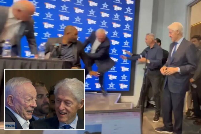 As Jerry Jones and Cowboys brass were holding their pre-NFL draft press conference on Wednesday, former president Bill Clinton stopped by, interrupting the proceedings.