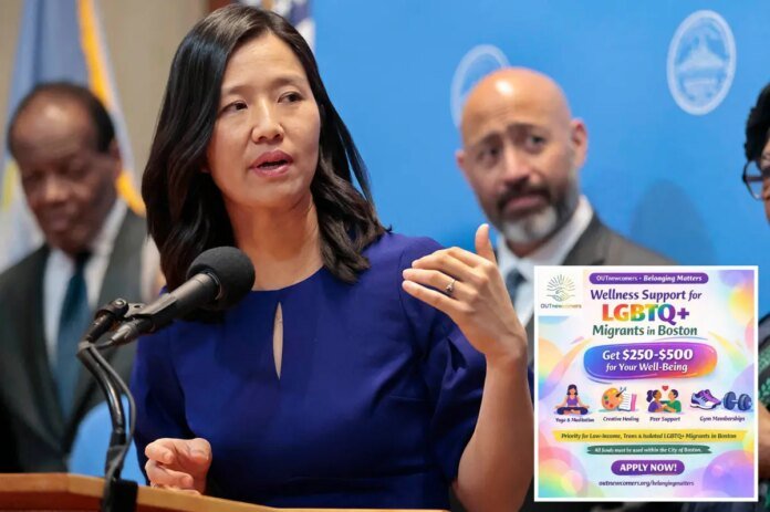 Boston Mayor Michelle Wu’s office is denying reports that city funds were used to support a program offering LGBTQ migrants up to $500 in “wellness” perks, after a local advocacy group advertised the benefits and later scaled back its description amid backlash.