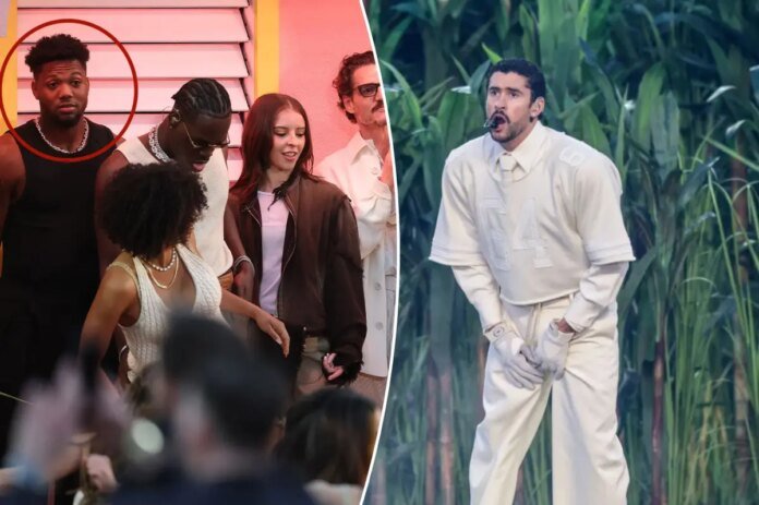 Acuna, on the far left, was in the background for Bad Bunny’s halftime performance on Sunday. Getty Images