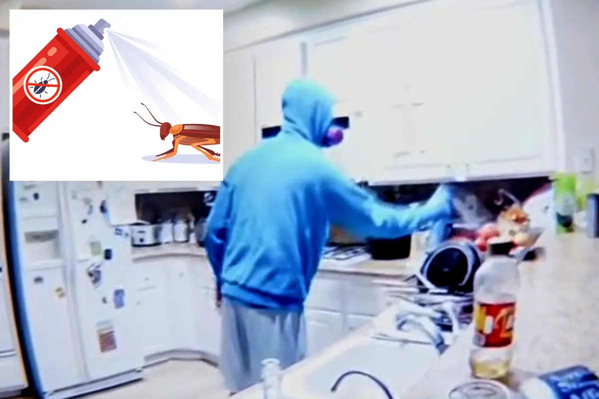 A hidden camera caught a Southern California couple’s roommate allegedly spraying their food with toxic insect repellent.