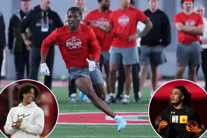 Carnell Tate is expected to be the first wide receiver drafted. In his last season as a Buckeye, he stood out with 51 catches, 875 receiving yards, and nine touchdowns. His -200 odds lead the way, with the Post’s Steve Serby projecting the Ohio State product to be selected as high as No. 6 in his most recent Mock Draft.