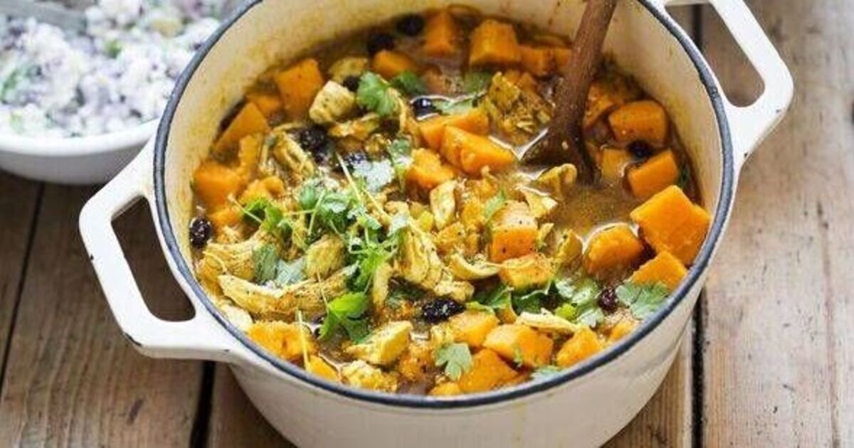 7. Return the chicken to the pan. Bring to the boil. Reduce the heat to low, cover, and cook for one hour, stirring occasionally, until the chicken is cooked and the potatoes and vegetables are tender.
