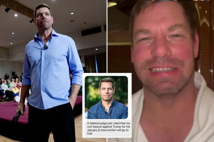 Swalwell claimed in the text that “MAGA allies” were trying to “end my political future because they know I’m the only one who can take down this corrupt administration.”