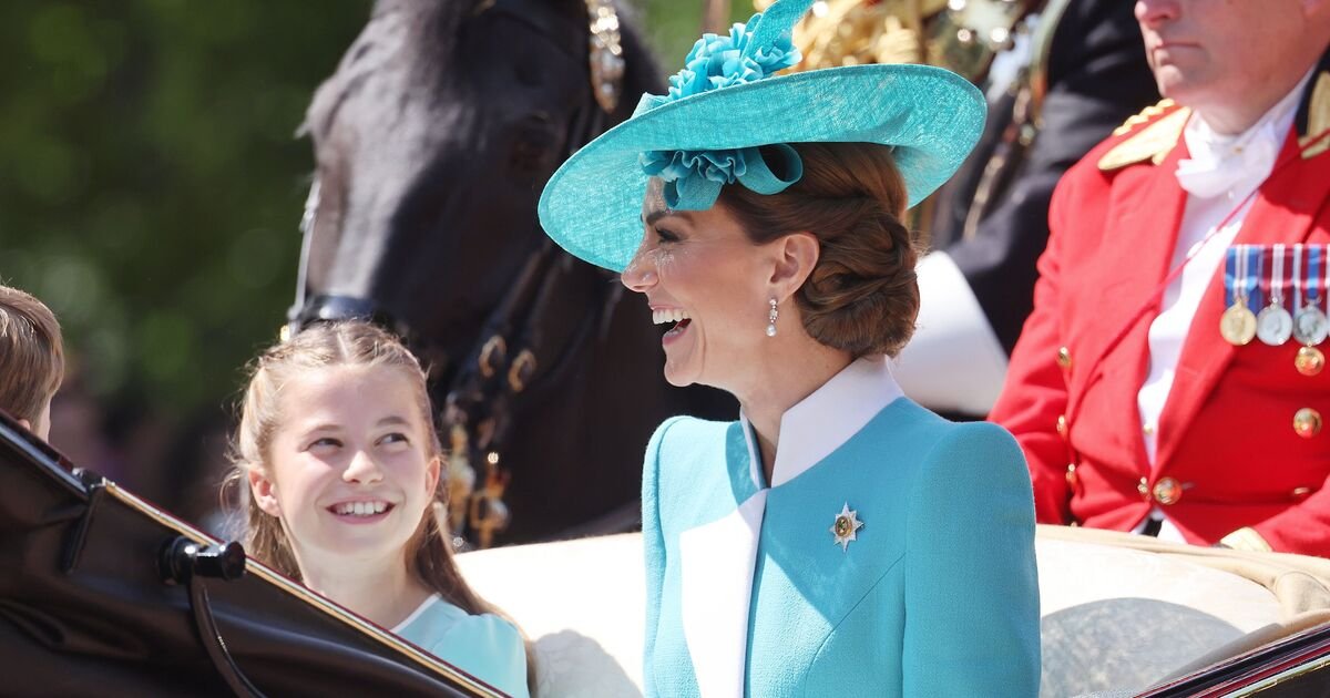 Princess Kate and Princess Charlotte have sparked fan frenzy today at Trooping The Colour by stepping out in co-ordinated outfits. The Princess of Wales, 43, has been seen in a carriage in the procession with her three children Prince George, 11, Princess Charlotte, 10, and Prince Louis, seven.