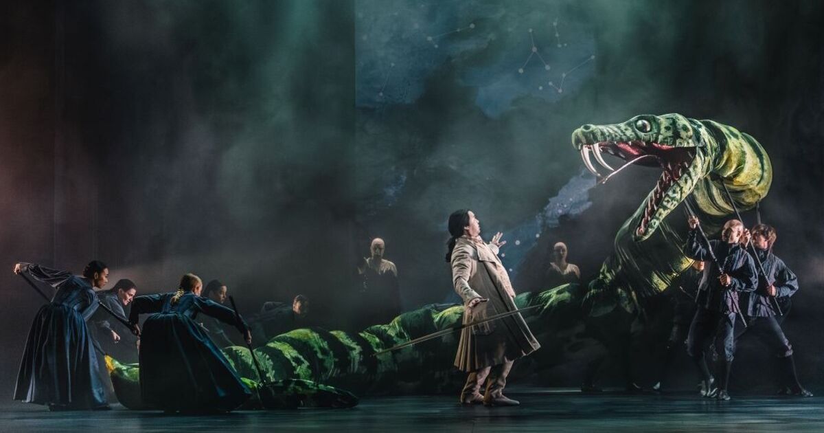 The tone of this production is marvellously set from the very start when we see Tamino pursued by some sort of giant serpent operated by a team of very skilful puppeteers. Soon after, we see Papageno chasing a bird whose antics are again due to great puppetry which turns the bird into a real scene-stealer. The serpent and the bird set the mood and the inherent humour never relaxes. With the young French conductor Marie Jacquot setting a fierce pace, the Orchestra of the Royal Opera House ensure that Mozart’s great music shines through it all.