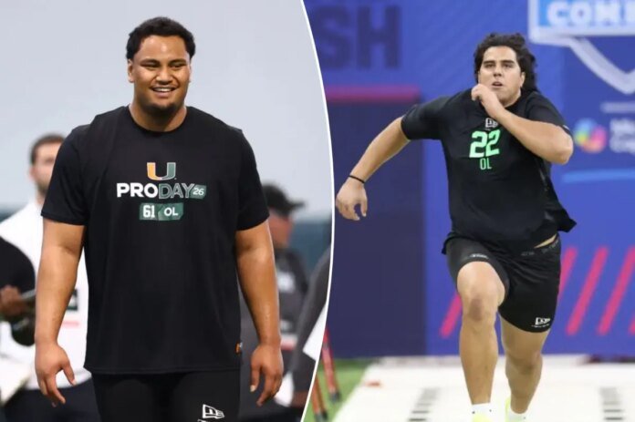There is a two-man battle brewing for the first offensive lineman drafted between Miami’s Francis Maulgoa and Utah’s Spencer Fano.