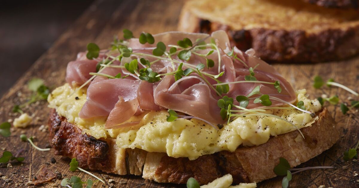 For optimal results, the creamy scrambled eggs are best added on top of toasted bread.