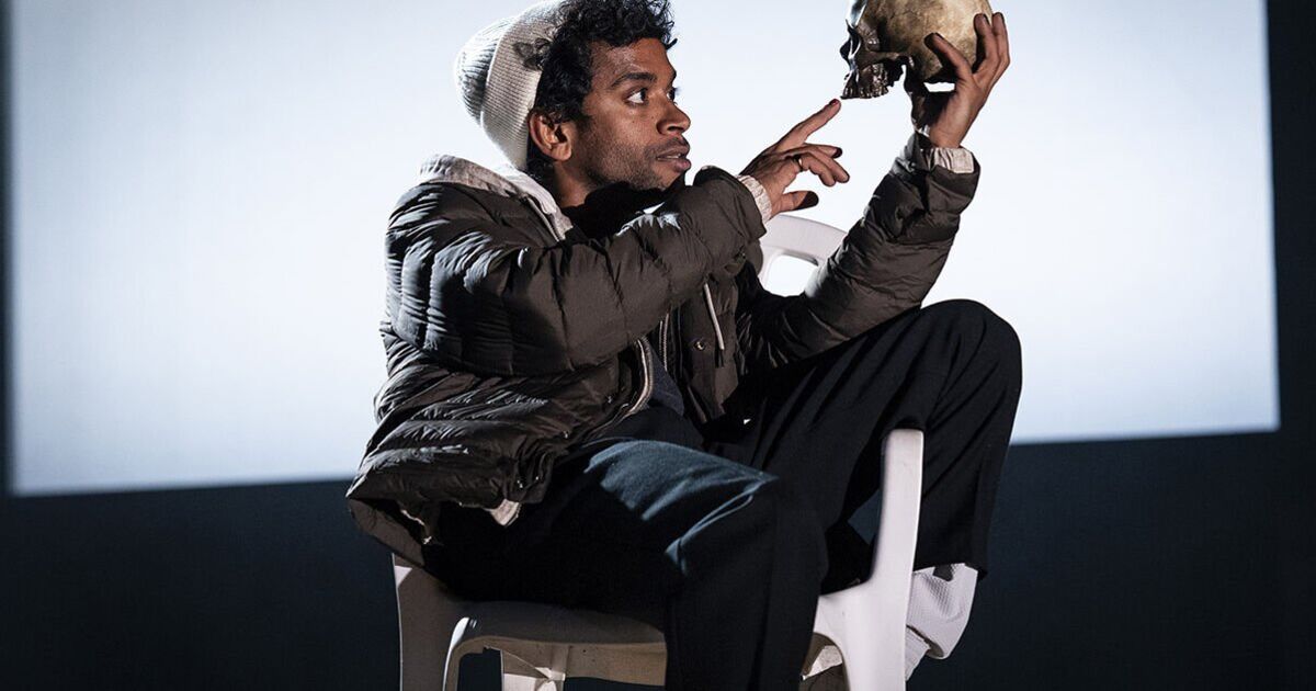Hamlet’s sat there on a white plastic chair, a scruffy small-framed urchin in a beanie, trainers and puffa holding that infamous skull. And that’s fine. Across centuries, Shakespeare’s tortured hero has been presented in every way imaginable but, alas poor Yorrick (and the rest of us), this gamble doesn’t pay off. After a very divisive debut with Bacchae, new National Theatre Artistic Director Indhu Rubasingham will have been pinning much on this sophomore outing. But, again, bold ideas are drowned out by lack of focus.