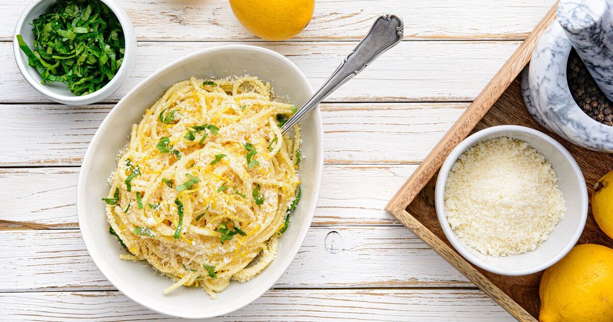 With just four key ingredients, spaghetti, lemons, basil, and cheese, this pasta dish is a great budget-friendly option for those weeks when the purse strings are a little tighter.