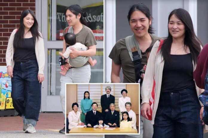 The Japanese princess who renounced her royal title and wealth to marry her commoner husband has been spotted with a little heir — after fleeing NYC for the suburbs.