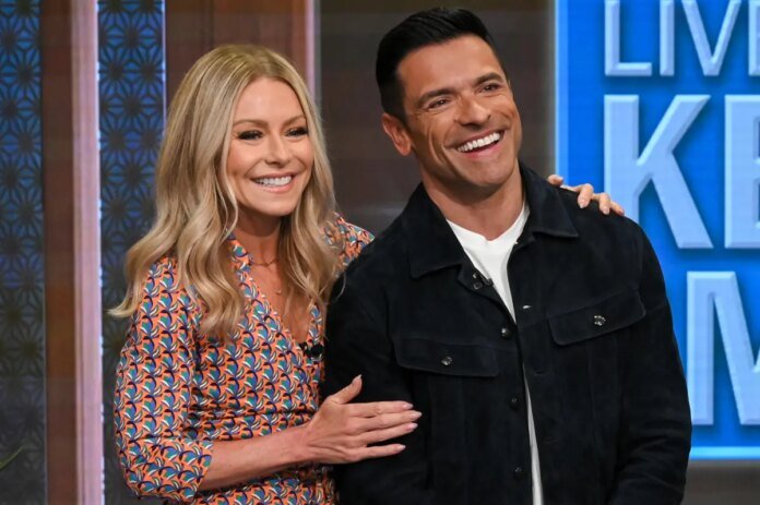 Kelly Ripa and Mark Consuelos hosting their morning talk show in 2023. ABC