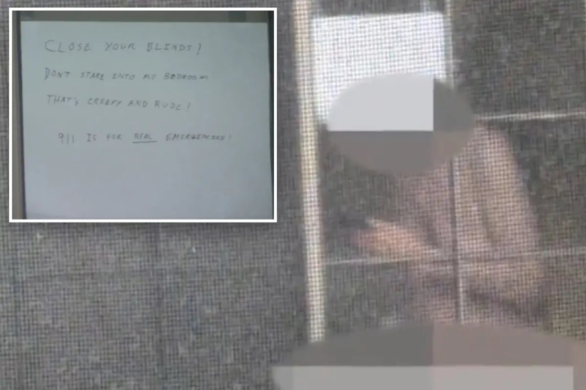 In response, the man posted a sign outside his apartment that read: “CLOSE YOUR BLINDS! DONT STARE INTO MY BEDROOM THAT IS CREEPY AND RUDE! 911 IS FOR REAL EMERGENCIES!”