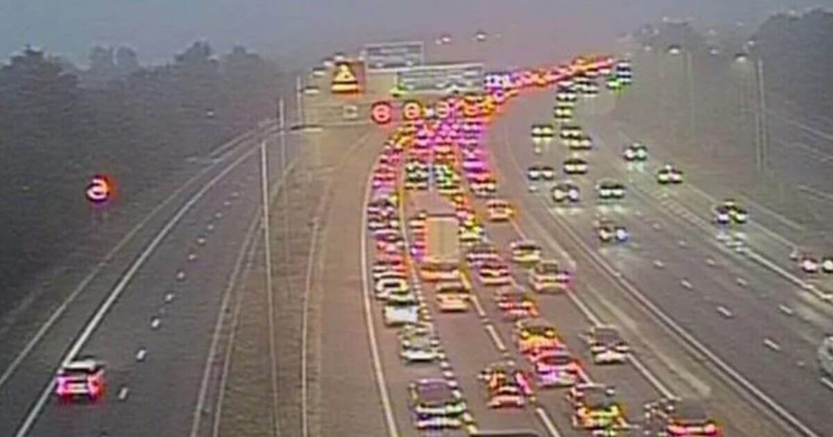 Share Facebook Twitter LinkedIn Pinterest Email Both carriageways were blocked with “severe” delays on Sunday evening.