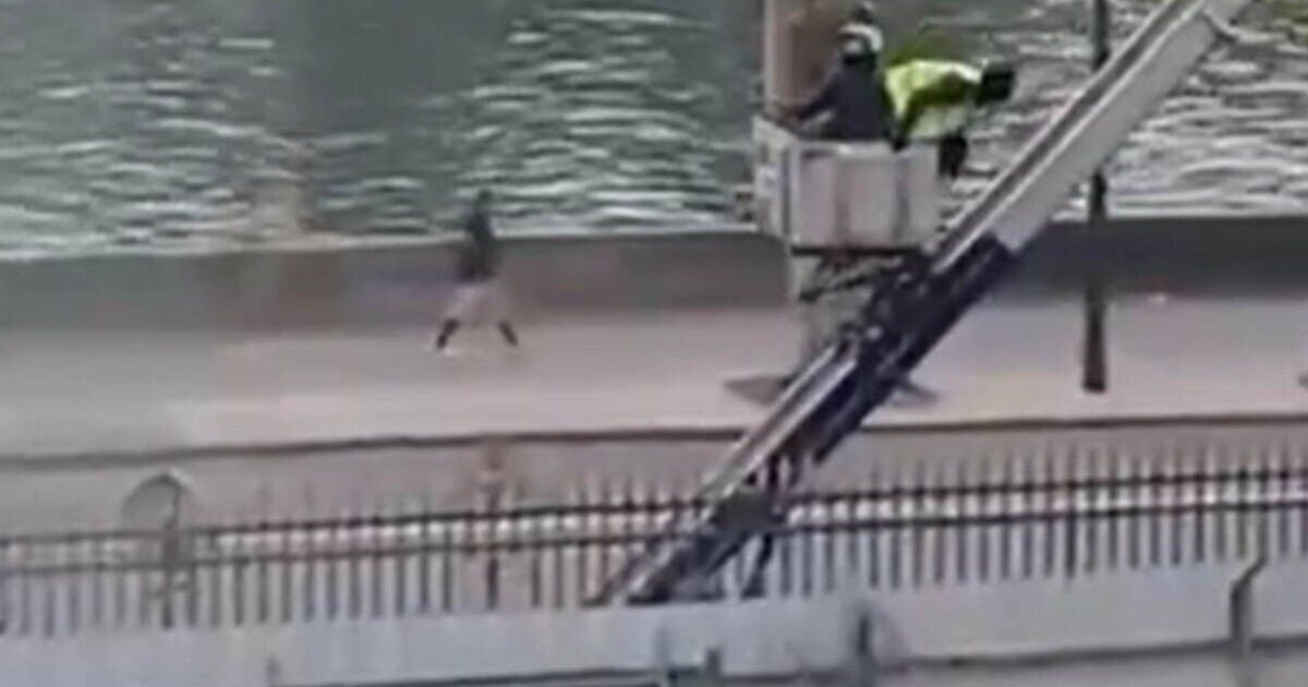 An astonishing video seemingly showing burglars escaping from the Louvre with £76million-worth of stolen jewels has emerged in France. It appears to show two masked men calmly descending a ladder in a mechanical delivery basket by the Paris landmark on Sunday morning. They had spent just seven minutes in the world’s most popular art museum before getting away with two accomplices on mopeds.