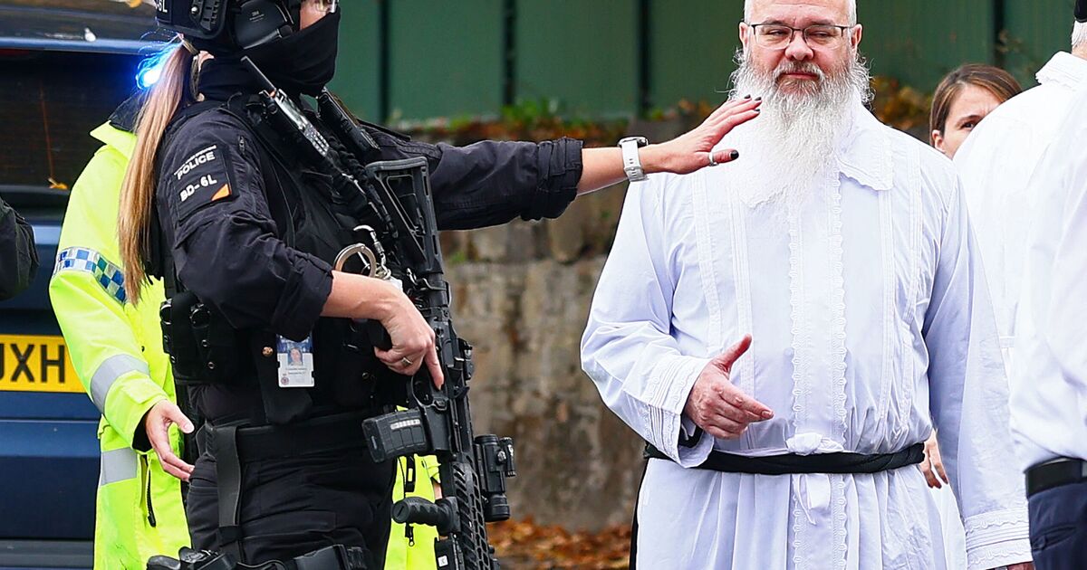 The killer, a bearded man in his 30s of Asian descent, drove a black Kia Picanto car at speed into a group of people who were standing guard outside the Heaton Park Hebrew Congregation Synagogue in the Crumpsall area of the city at 9.31am. The knife-wielding maniac smashed into the front gates then leapt from the vehicle and began stabbing “anyone and everyone” – killing two and causing severe injuries to three more.