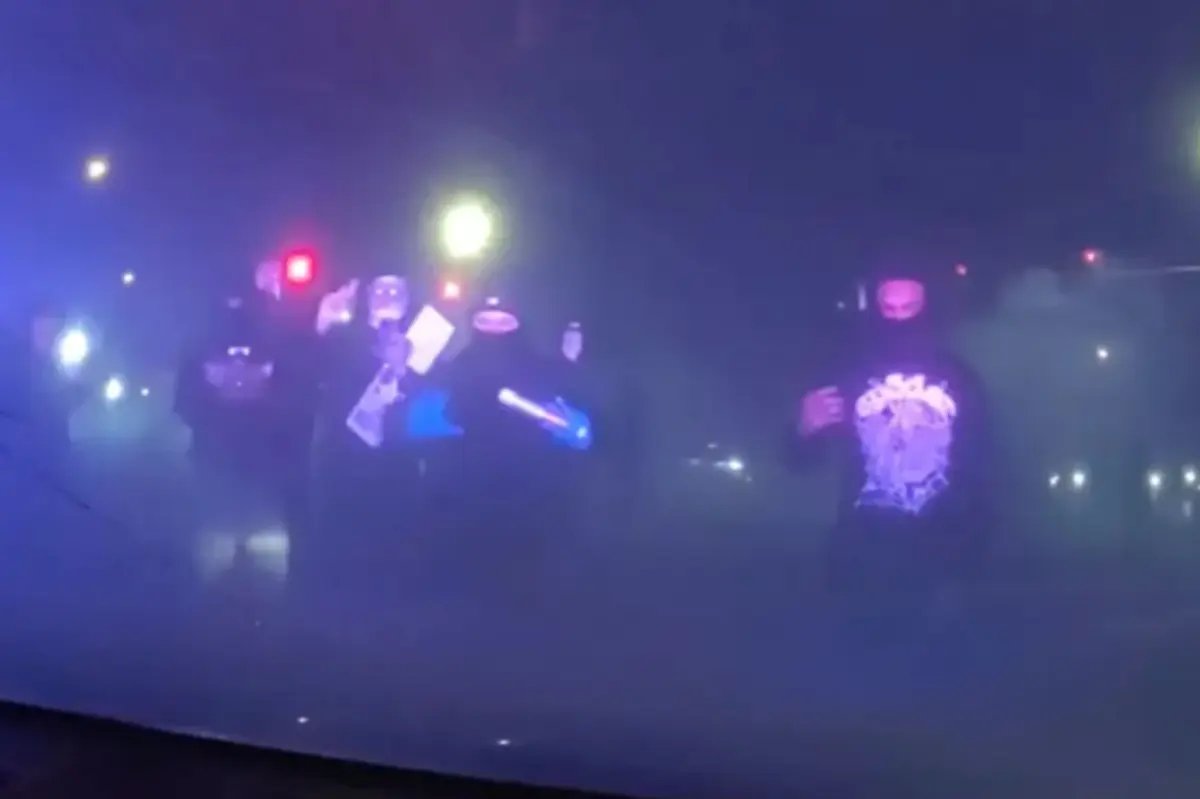 Dash camera video showed individuals appearing to deliberately block police vehicles by standing in the roadway and drivers continuing to perform “donuts” in the road.