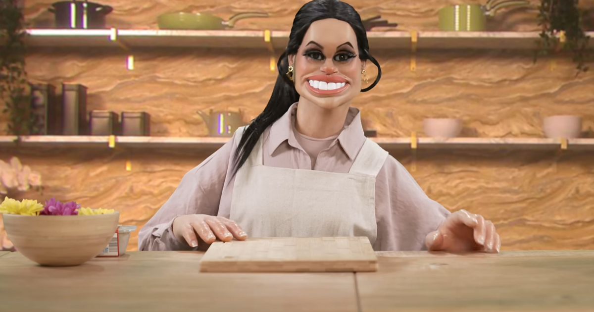 The puppet then pulls out what looks like a microwavable meal and says: “Today’s recipe is going to take you five minutes. I learned this in France. Eat. Pray. Love.”