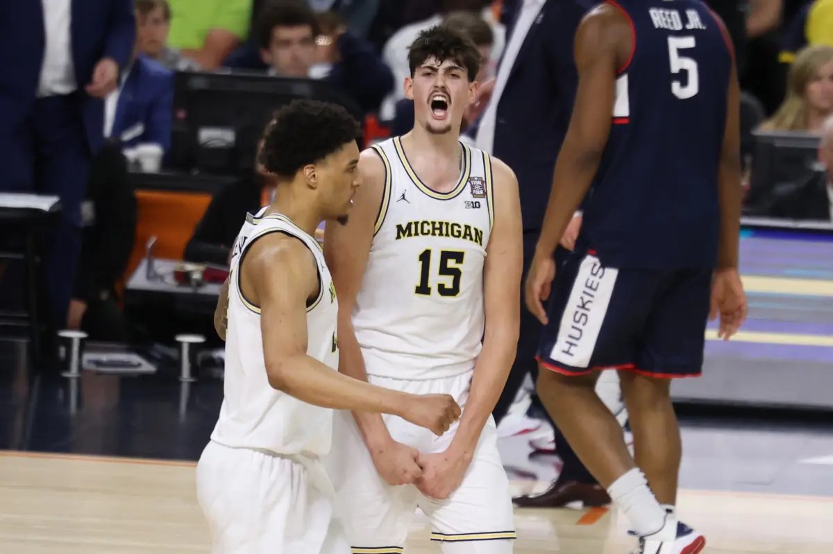 Michigan held the lead for much of the game, but held off a late push by the Huskies to prevent UConn from winning its third title in the last four years.