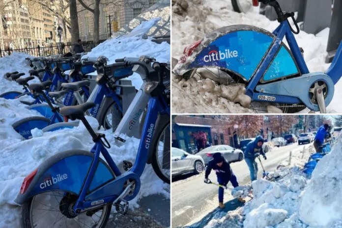 Cyclists were fuming in the aftermath of Winter Storm Fern, which dumped over a foot of snow on the city, telling The Post it was far too difficult to access a bike, with ice and flakes covering docking stations.