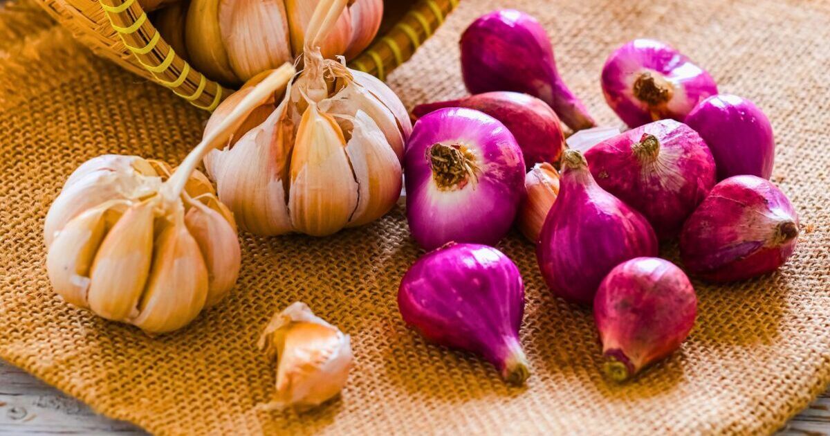 Onions and garlic tend to dry out overtime, and any moisture they release will create a humid environment, which can cause them to begin rotting.