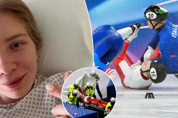 Sellier suffered the scary injury Friday during the sixth quarterfinal head of the women’s 1500 meters when American skater Kristen Santos-Griswold’s skate caught her in the face while she slipped to the ice during a tangle with Italy’s Ariana Fontana.