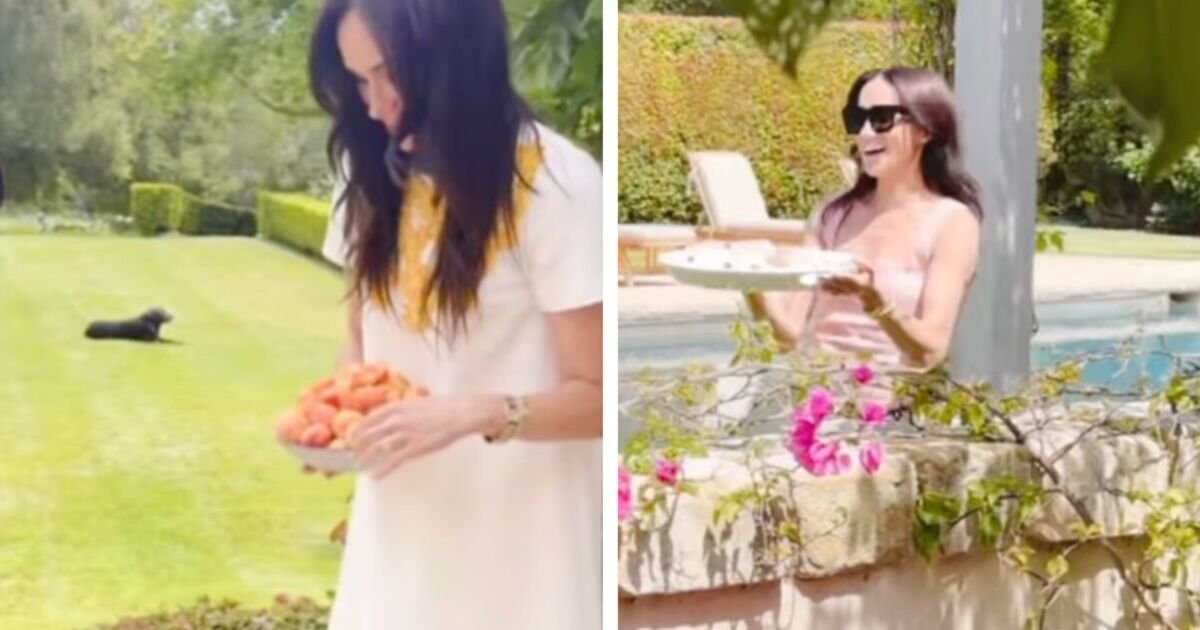 Additional scenes captured the Duchess working in her kitchen and documented the production process of the fruit preserves. Other scenes in the video show Meghan walking past the family’s garden swimming pool, the duchess in the kitchen, and the fruit spreads being created.