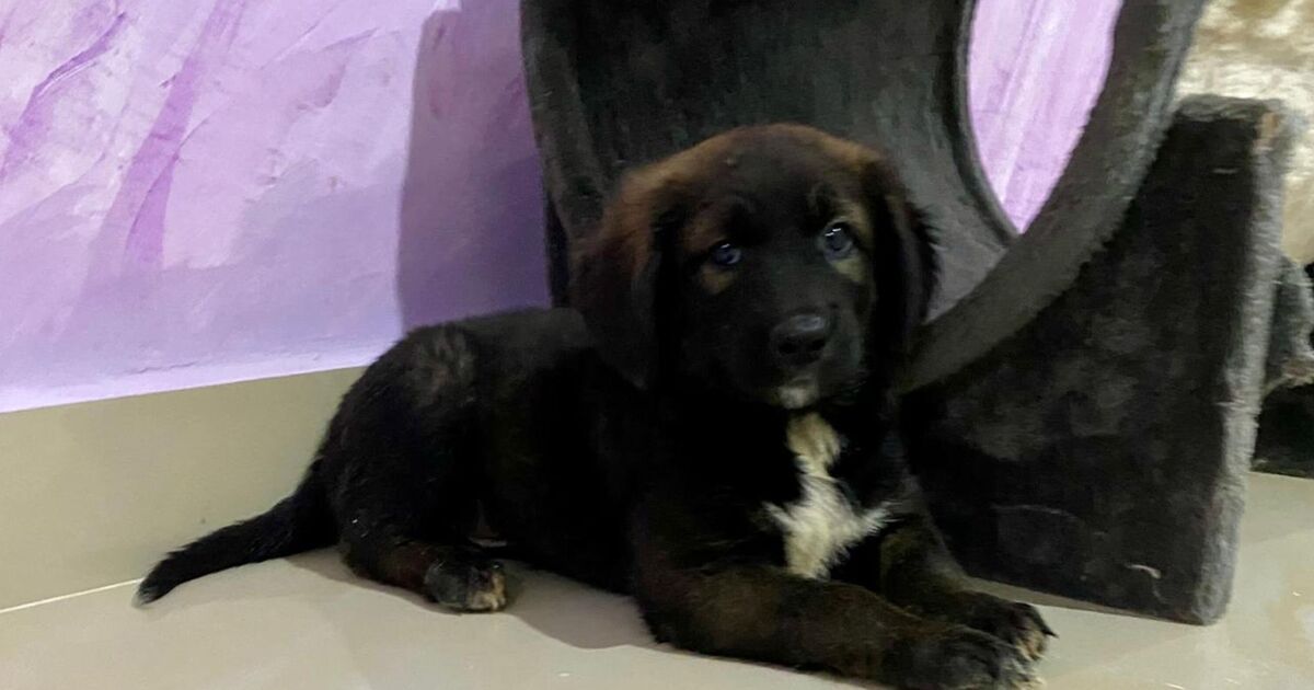 The poor pooch, a crossbreed who will likely grow to be a similar size to a labrador, is currently in Egypt but is seeking a home in the UK through the animal charity.