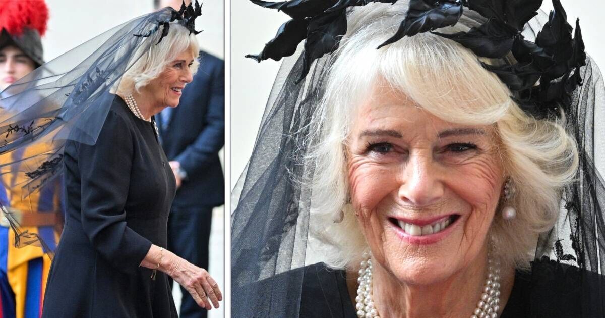 Queen Camilla paid a poignant tribute today to a beloved member of the Royal Family, as she headed to the Vatican to meet Pope Leo. The Queen wore an all black ensemble today as she arrived at San Damaso courtyard in the State Bentley.