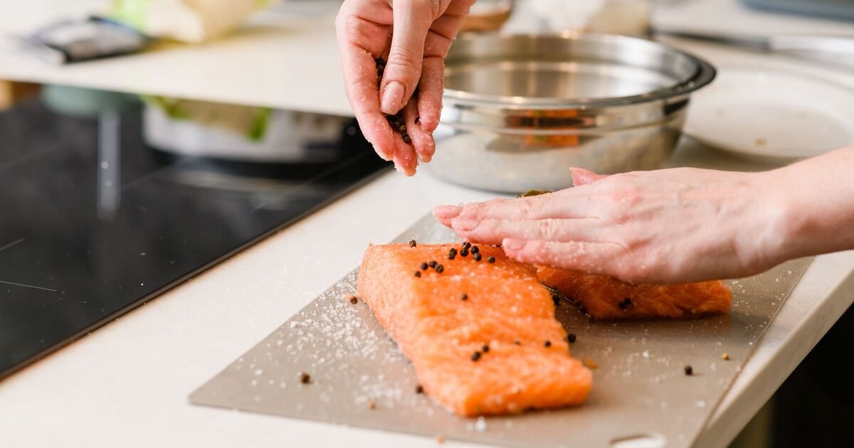 Season the salmon with salt and ground black pepper, and spread the cream cheese mixture equally over each fillet.