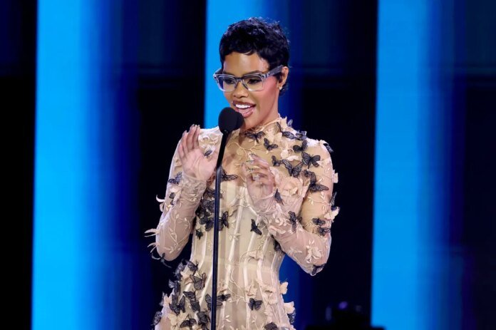Teyana Taylor speaks onstage during the 2026 ESSENCE Black Women In Hollywood Awards at Fairmont Century Plaza on March 12, 2026 in Los Angeles, California. Getty Images for ESSENCE