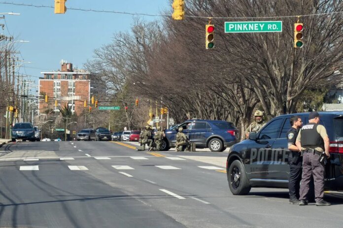 Cops were scrambled to a block on Park Heights Avenue in the northwest of the city, where a suspect was firing shots from a window not far from the Agudath Israel of Baltimore Orthodox synagogue.