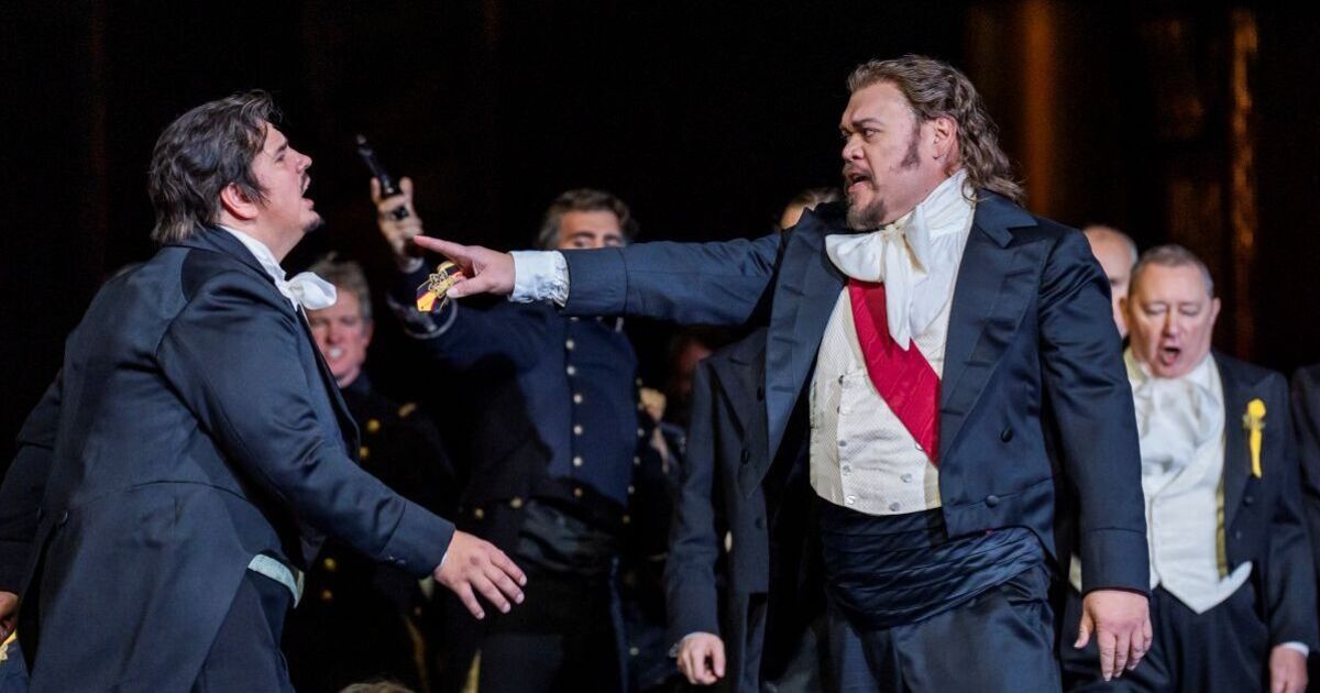 The story concerns the occupation of Sicily by France in the 13th century and a revolt culminating in a massacre of the French by the Sicilians in 1282. The massacre was signalled to begin at the sound of church bells ringing for evening prayers, the Vespers of the opera’s title. Oddly, this production adds confusion by updating it to the 19th century, perhaps hinting at Verdi’s revolt against French opera. The plot centres on patriotism and revenge, with added moral conflict when Sicilian hero Henri learns that his bitter enemy French Governor, Guy de Montfort, is his father. Henri is superbly played by Ukrainian tenor Valentyn Dytiuk making his Royal Opera debut in fine style. His voice combines power and sensitivity, displaying the full emotional range demanded by the role. He is in love with fellow revolutionary Hélène, excellently played by Lebanese-Canadian soprano Joyce El-Khoury. Their duets are a delight, as Dytiuk lessens the power of his voice to blend perfectly with El-Khoury’s.