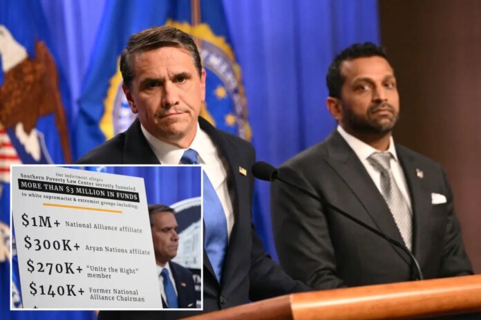 The Alabama-based non-profit was charged by the Department of Justice with wire fraud, bank fraud, and money laundering conspiracy on Tuesday for allegedly hiding the from donors the fact that doled out more than $3 million over the course of nearly a decade to “field sources” tasked with infiltrating violent extremist groups, acting Attorney General Todd Blanche and FBI Director Kash Patel announced Wednesday.