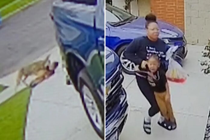 The incident occurred Tuesday morning as the boy’s family unloaded their SUV in Carson when the animal suddenly jumped on the pint-sized victim and began to violently bite down.