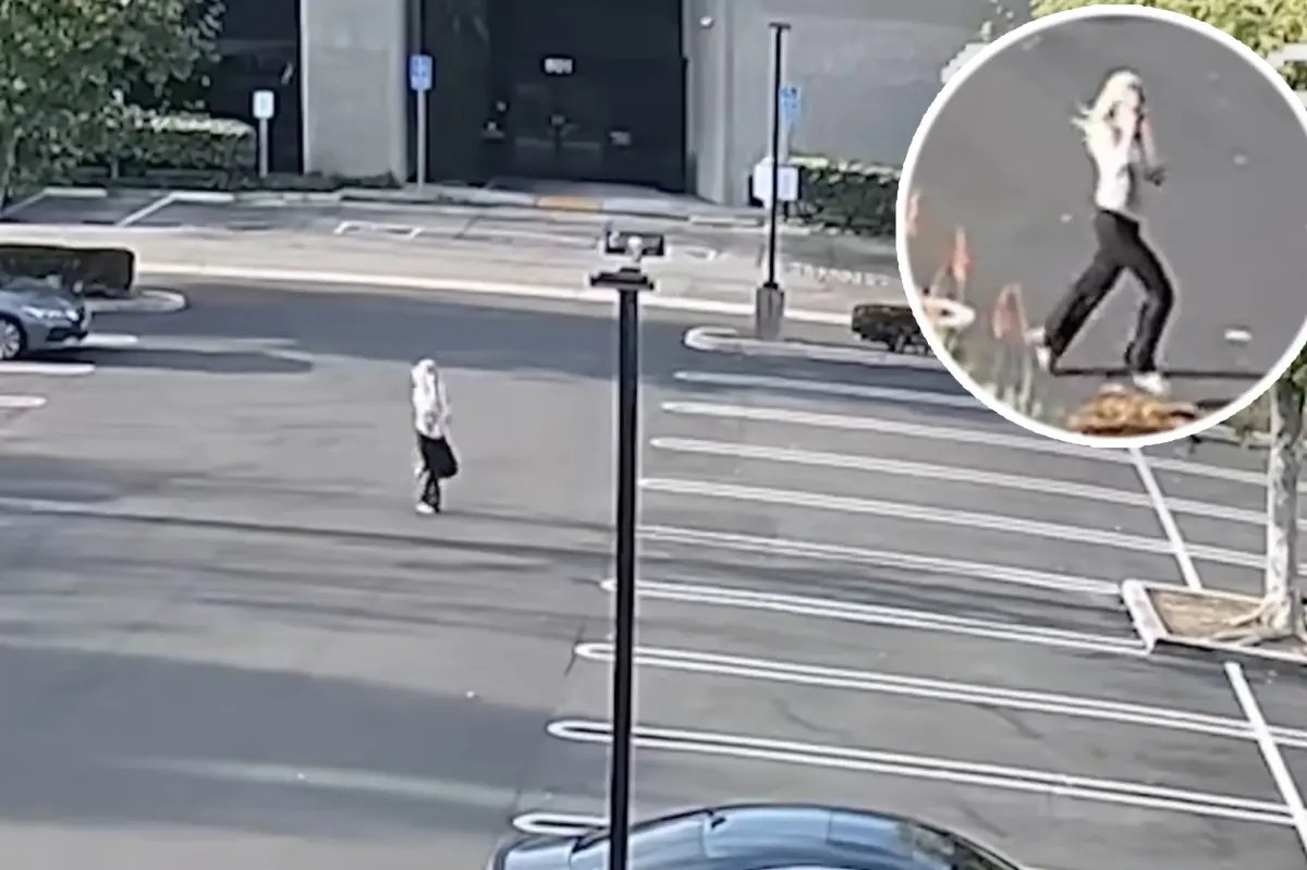 Chilling security camera footage shows the young woman fleeing for her life after a man ambushed her in broad daylight on Tuesday morning, according to KTLA.