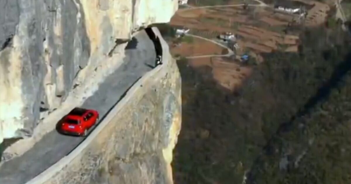 Perched about 3,000 feet (1,000 metres) above the ground, it is also one of the most dangerous in the world, with no room for error for car drivers.
