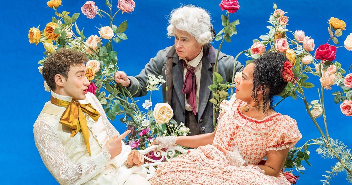 This multi-diverse production is absurd, from the casting all the way down to the bone. Jack (Nathan Stewart-Barrett) and Algy (Olly Alexander) are transparently as queer as folk, which makes their courting of Cecily (Jessica Whitehurst) and Gwendolyn (Kitty Hawthorne) rather bewildering, even if they were bisexual. Not that it matters in a production that throws logic out of the window and brings in a gay orgy, a lesbian flirtation between the two girls and a concluding dance sequence with the entire cast dressed as flowers, from daffodils to pansies.