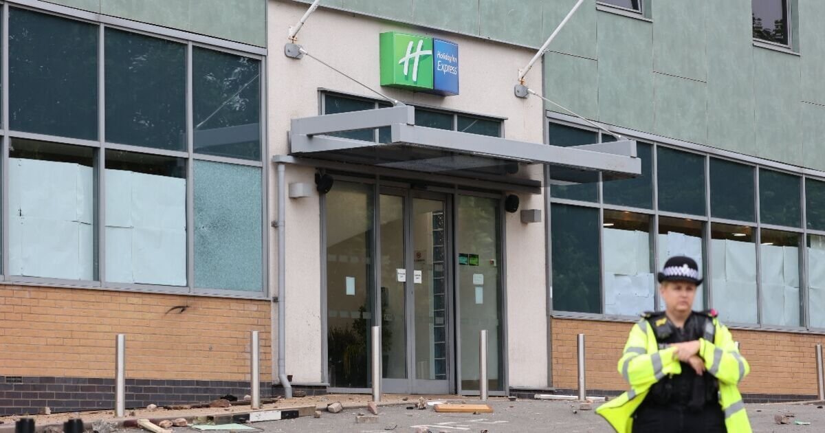 Hundreds of protesters descended on the Holiday Inn Express in Tamworth in August 2024 where missiles including fireworks, a petrol bomb, bricks, chunks of concrete and lampposts were hurled at the hotel and Staffordshire Police officers. In the aftermath of the unrest, some locals turned out to clear up debris outside the hotel, where graffiti had been daubed on a wall, reading: “Get out of England”.
