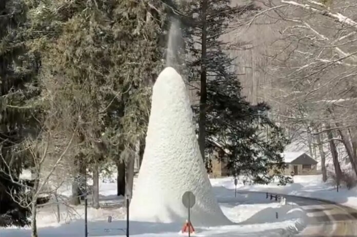 Located in Letchworth State Park, an ice sculpture also informally known as an “ice volcano” has developed during these below-freezing temperature days.