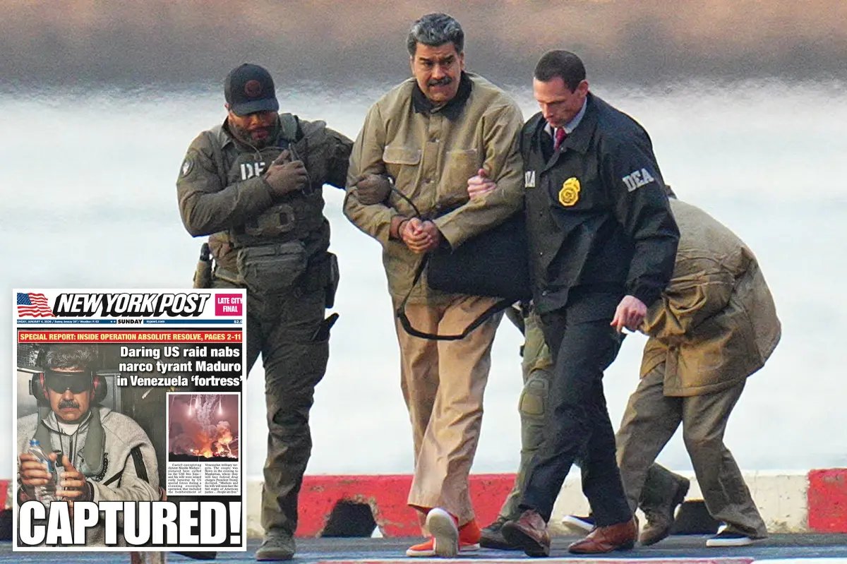 New York Post cover for Sunday, January 4, 2026. Front Page. Captured! - daring US raid nabs narco tyrant Maduro in Venezuela fortress.