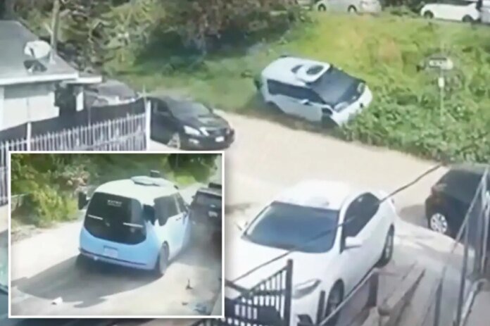 The Sunday morning smash-up happened around 11 a.m. on Lilac Place near Dodger Stadium, with doorbell cam showing the vehicle – which was being driven manually – speeding down the steep, narrow street and sideswiping several cars along the way, KTLA reported.