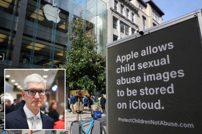 West Virginia’s attorney general filed a lawsuit accusing Apple of allowing its iCloud service to become what the company’s internal communications described as the “greatest platform for distributing child porn.” A sign outside an Apple store in Massachusetts, above. REUTERS