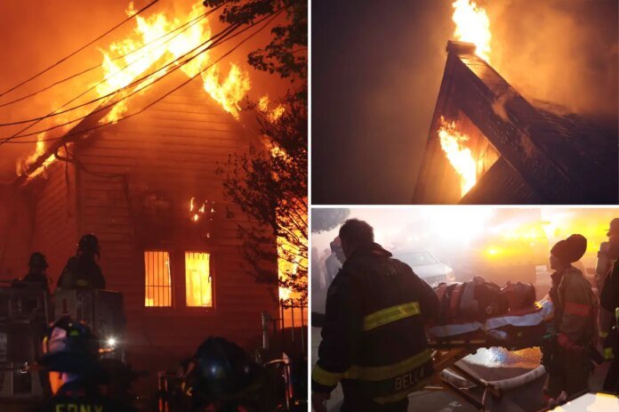 The blaze started at a residence attached to the First Reformed Church of Astoria on 12th Street, between 27th Avenue and Main Avenue, around 6:45 p.m., according to the FDNY.
