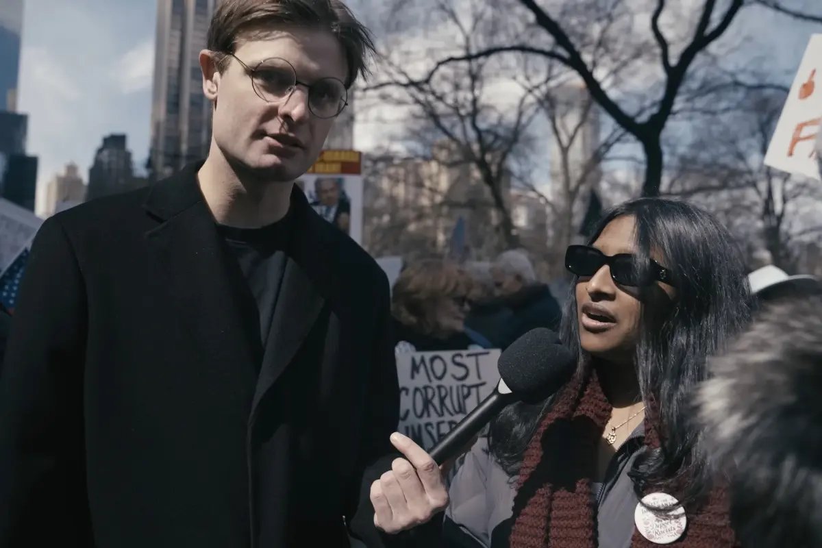 The interview happened during the March 28 No Kings Protest, when thousands took to the streets of Midtown. Ron Adar/Shutterstock